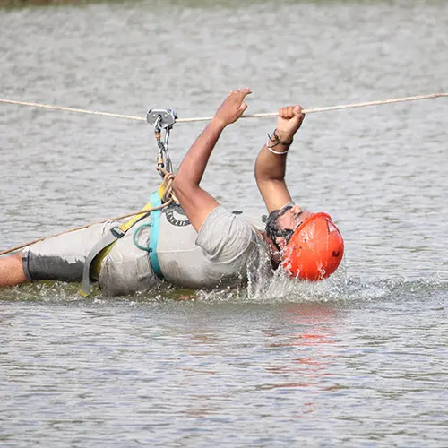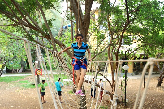 Test your courage and agility with the adventurous commando net crossing challenge.